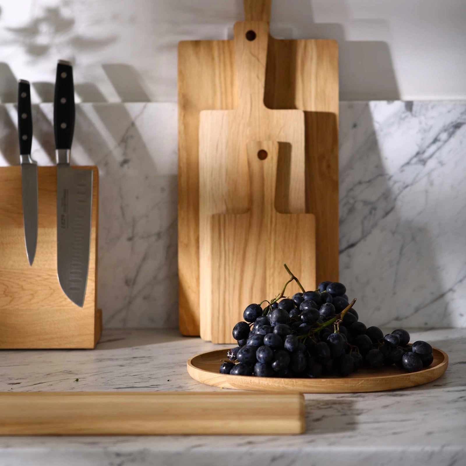 Vindfall er en kollektion af serveringsbakker, der omfavner det uperfekte og legende. Hver del af kollektionen hylder naturens egne former og er skabt af smukt egetræ. Navnet, som er en blanding af dansk og svensk, refererer til træ, der er faldet naturligt, og som med sin unikke form har inspireret designet.