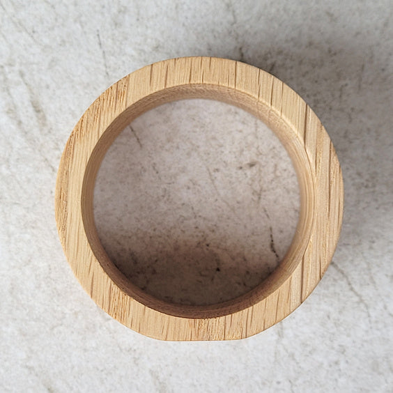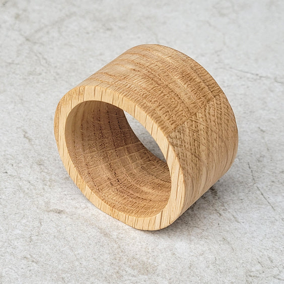 Servietringen er formgivet med en enkel og ren linje, der fremhæver egetræets smukke årestruktur. Hver ring er unik og bidrager med en varm og naturlig detalje, der passer perfekt til både hverdagsbrug og festlige lejligheder.